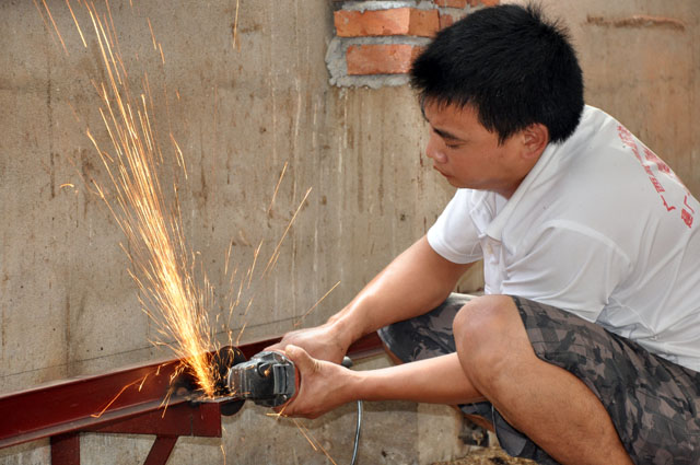 | -- 作者:韦永享 -- 发布时间:2011/8/21 11:53:00 -- 2011年8月20日 星期六 天气:晴 25~35℃ 新发酵床改造第三天 经过两天的施工,新发酵床初具雏形,今天施工有四位师傅,多了两位是来安装承载导轨的支架,测量好间距1.0米/个。开钻打孔,支架上端两个空,下端固定一个空,然后把膨胀钉打进去,扭紧螺丝。是红砖墙面,打孔比较容易,正应为容易,还有些担心牢固问题,把三脚架焊接在膨胀钉上,翻爬机自身重就有1000斤,在加上运动,力量会更大些。 另外我同事把昨晚切割的钢材焊接起来,由于是晚上切割,接头多少有些不够整齐。因此,还需要打磨在焊接,总共要焊接4.5米的横梁有5条,总的横梁数是23条。在列热下,还有打磨、电焊、一个人光把这五条接好都要花一天的时间。 下午在过去看支架安装情况,支架打孔、上膨胀钉基本完工,还有就是焊接支架,固定导轨的水平面和两导轨内侧的等距离,是个惊喜活,我们的自动翻爬机同事告诉我一个细节,这个内侧等距离的误差控制在2毫米内,平面误差也要控制在2毫米内。导轨焊接头都要磨平,伸出来承载导轨的支架外面也要和导轨的内侧面平行,这又增加了我们的焊接难度。尤其是对面强的支架,伸出来的臂比较长,墙面不够水平,支架臂是等距离的。这样,固定好轨道内侧的距离焊接后,得切掉多余的臂长。 师傅在焊接固定支架