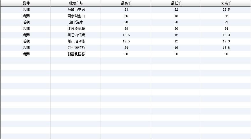2012年10月19日农业部:活鹅批发价格日报 Post By:2012/10/21 14:06:00