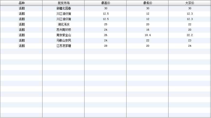2012年11月16日活鹅批发价格日报 Post By:2012/11/16 14:52:00