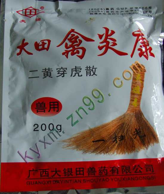【用法用量】用100斤温水浸泡本品120g 2个小时后用药液给患禽饮用,药渣拌料喂服。连用3-4天。