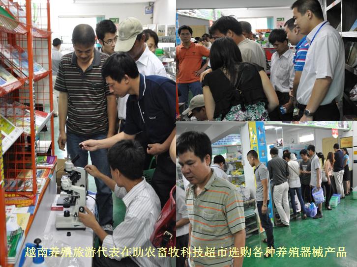 本网讯,2012年4月22日上午,广西助农畜牧科技超市迎来一批越南养殖户的旅游团,本次旅游团一行约40人,是越南国内比较规模养殖户自发组织到中国旅游及养殖新技术考察工作,广西助农公司品种齐全的畜牧科技超市、先进的网络营销模式、养殖零排放技术在国内外养殖同行已经家喻户晓,本次旅游团考察助农公司的科技超市是本次旅行的重要行程之一。