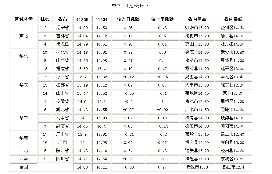 全国每日猪价行情