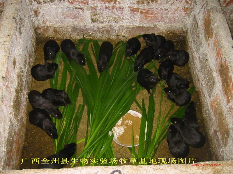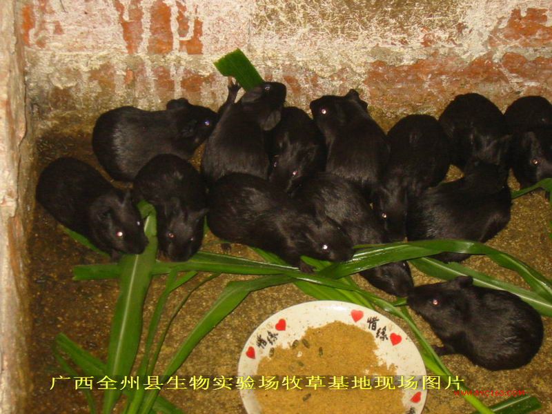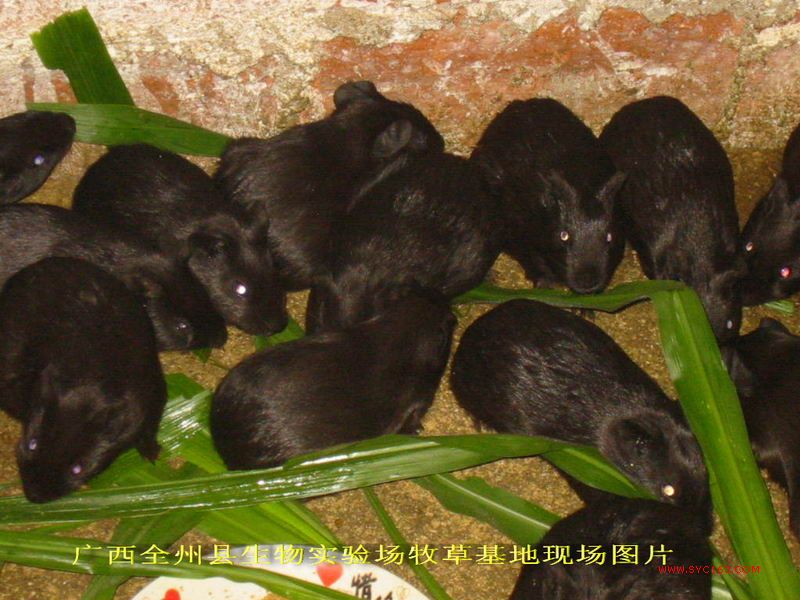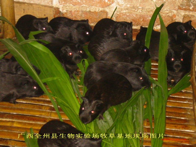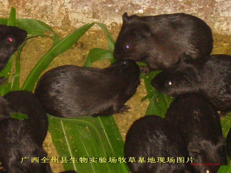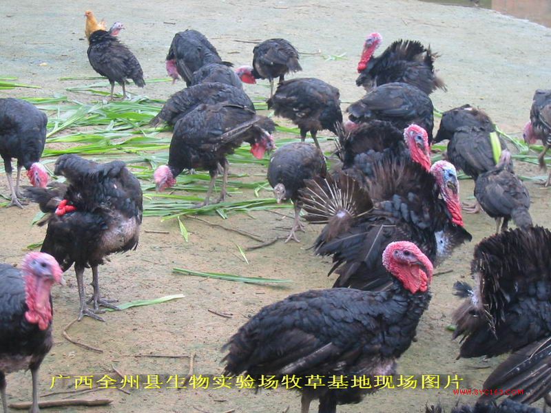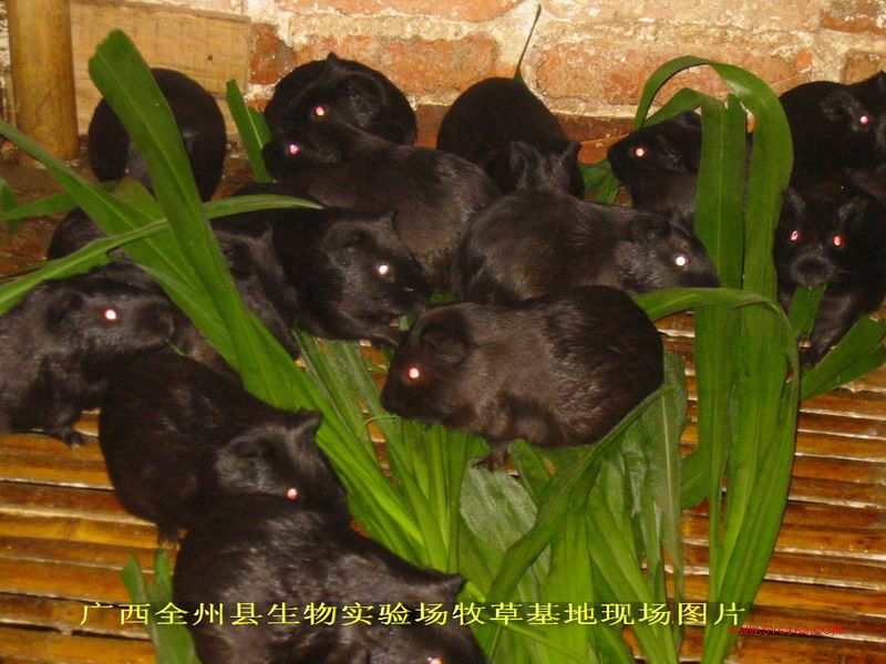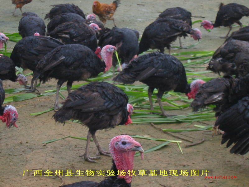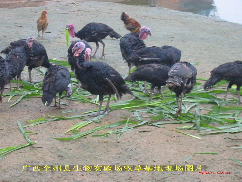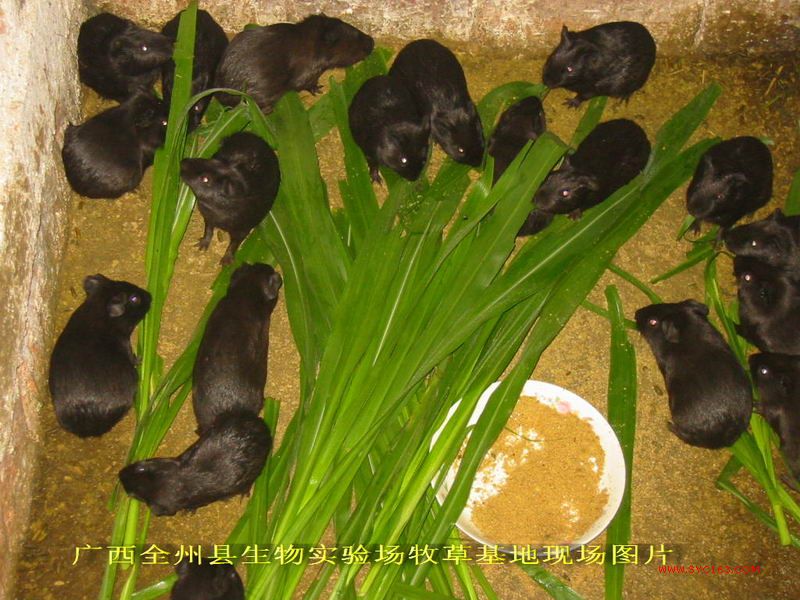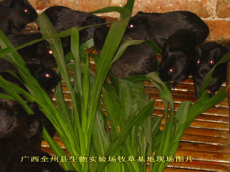 实验场工人收割皇竹草饲喂火鸡和黒豚鼠