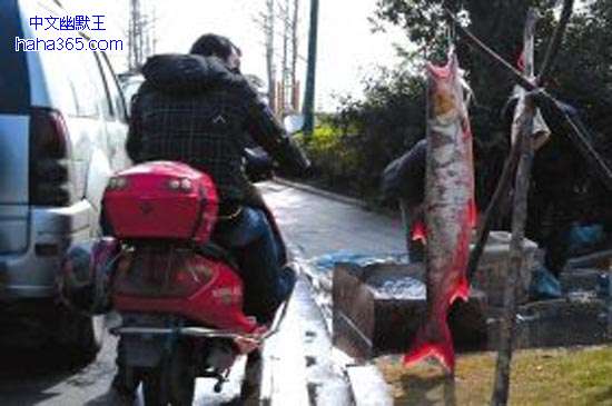 标题:渔民捕获1.2米长鳡鱼街头叫卖 多名路人合影