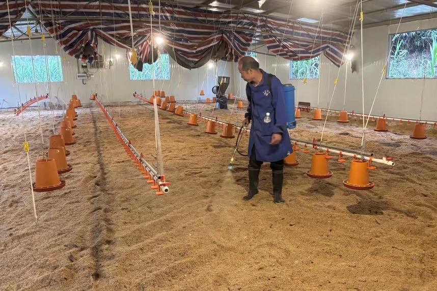 为改善这种状况,该鸡场引入了薄垫料发酵床技术。这是一种生态养殖技术,其核心在于利用微生物的分解作用来处理鸡粪,实现无臭养殖。