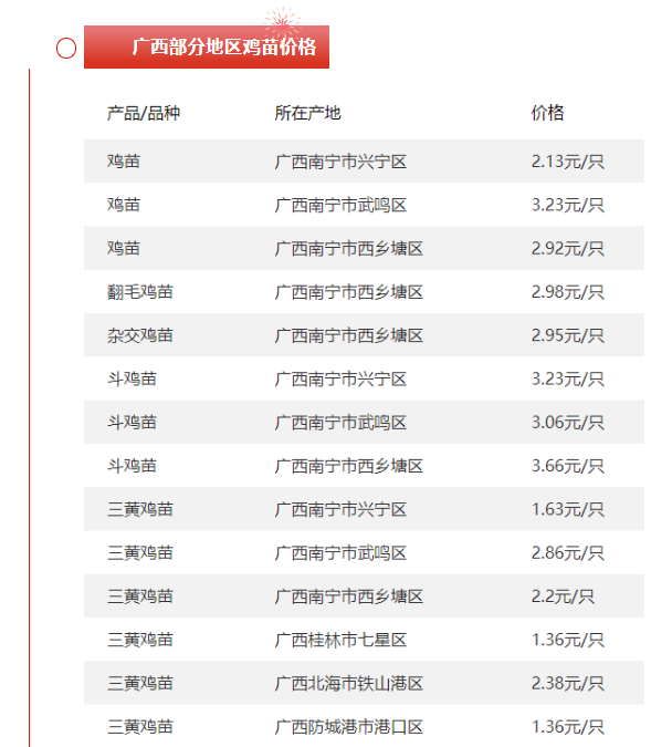 家禽观点 今日鸡苗市场呈现出价格稳定的趋势,不同地区和不同品种的鸡苗价格存在一定差异。整体而言,鸡苗市场供应相对充足,但部分地区因孵化提标扩面预订尚可,苗鸡价格有所上涨。 毛鸡价格上涨:近期毛鸡价格全面上涨,正处断档期,鸡源缺口扩大,养殖端压栏情绪加重。这在一定程度上提振了养殖户的补栏积极性,对苗鸡价格形成支撑。 供应与需求:年后开盘孵化种禽初期鸡苗供应量表现较为集中,但阶段性受毛鸡价格影响,一些中小孵化厂家鸡雏难卖,有毁苗托毛蛋亦有流向817鸡苗市场。近期孵化种禽厂家鸡苗供应面较先前大幅减量,但议价现象仍在。 饲养成本:当前养殖户出栏稍有盈利,但严控饲养成本对高价鸡苗抵触情绪转浓。这在一定程度上限制了苗鸡价格的上涨空间。 总体来看,鸡苗市场呈现出价格稳定的趋势。不同地区和不同品种的鸡苗价格存在一定差异,但整体波动不大。未来一段时间内,随着毛鸡价格的持续上涨和养殖户补栏积极性的提高,苗鸡价格有望继续保持稳定或略有上涨。然而,也需要关注饲养成本、市场需求和供应情况等因素对苗鸡价格的影响。 用手机微信扫描上面二维码关注“广西助农公众号”,更多养殖报价信息等着您。
