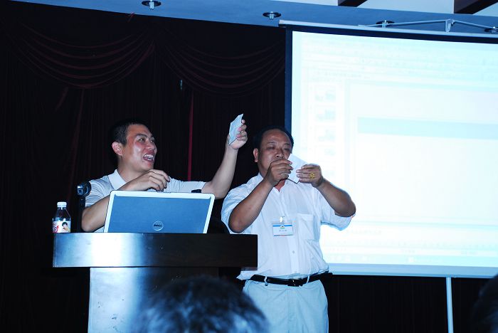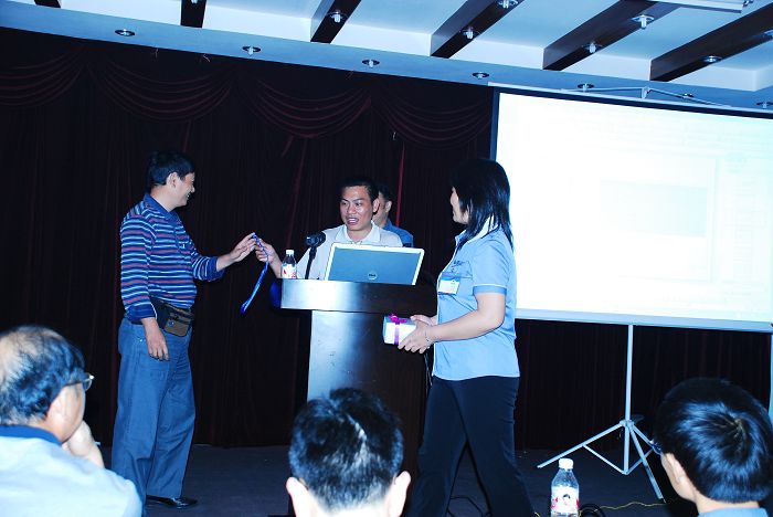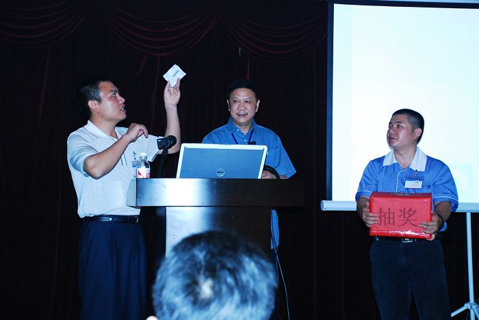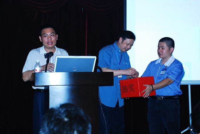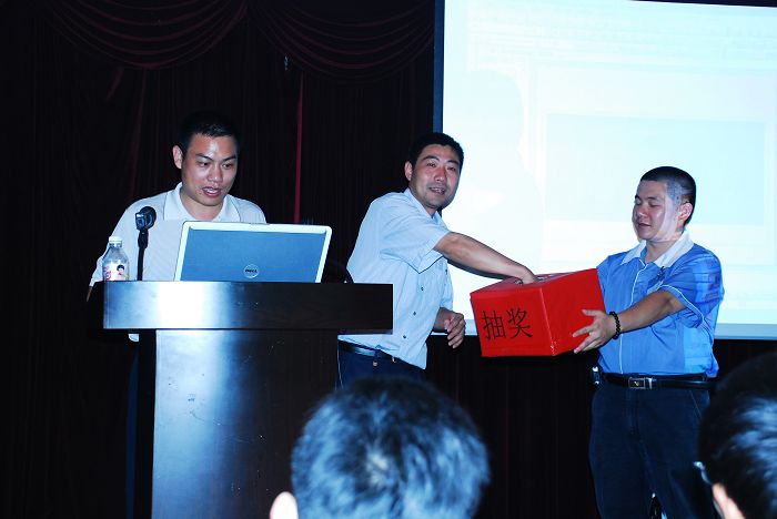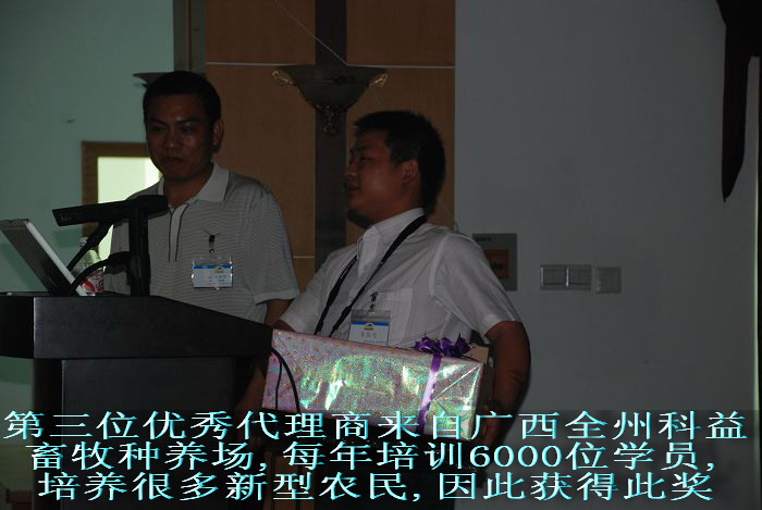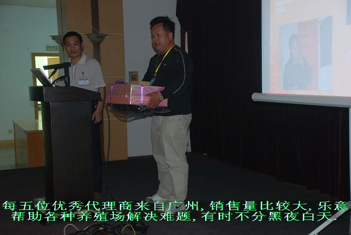 本次会议主要分为三个环节,第一个是我们的技术优势及产品销售技巧讲解,第二个,我们将如何保护代理商的利益,加大力度打击假货,严格管理市场,打击串货及低价销售行为.保证代理商利益,第三个环节是抽奖活动,本次抽奖奖品很多,有价值三千元以上的笔记本电脑四台,两台摄像机(价值三千元),价值千元的照像机12台,数码像框3台,价值500元以上的韩国进口剃须刀,本次会议赞助商 广西大比大畜牧有限公司 江西宜春圣宇畜牧有限公司 广西灵威动物药业有限公司 四川雅安新技术畜牧有限公司 广西中和元华药业有限公司 广西南宁牧友兽药有限公司 广西南宁培生兽药有限公司 广西南宁市大银田兽药有限公司