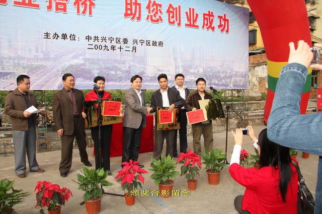 共有2865人关注过本帖树形打印主题:2009年12月1日南宁市兴宁区政府颁发三塘基地创业示范基地及方谊场长先进个人 |