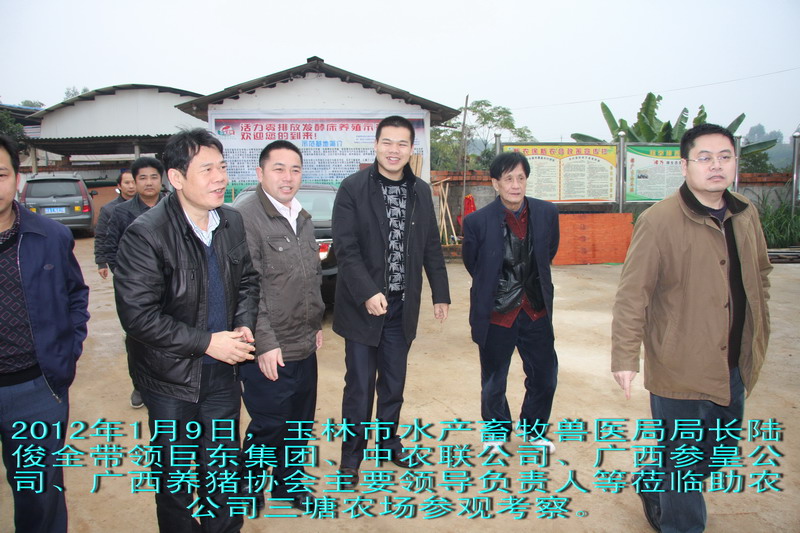 玉林市水产畜牧兽医局陆俊全局长率巨东集团、中农联公司、参皇公司、广西养猪协会主要负责人前来三塘农场考察 Post By:2012/1/11 18:09:00