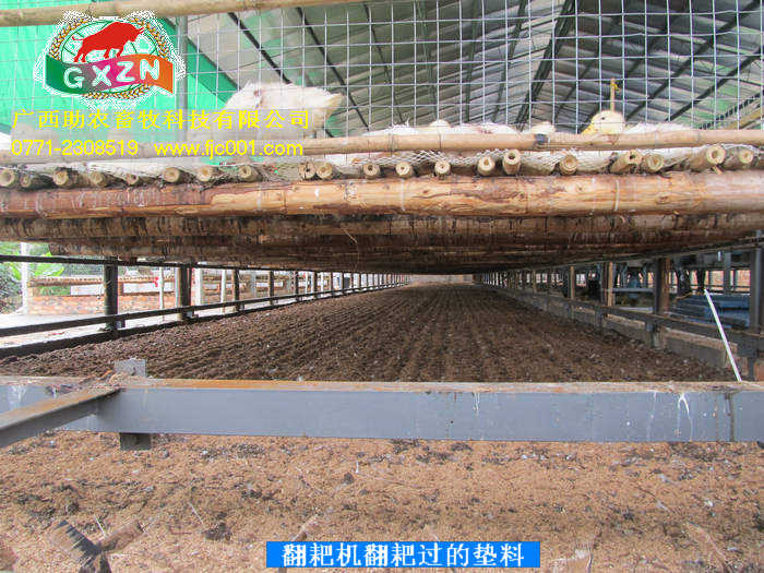 答:采用不接触垫料式发酵床首先是不会热,这主要是垫料40厘米厚度一直处于膨松状态,即使是环境温度是38℃,由于垫料中的含水量在50%-70%始终保持32℃左右,加上高温季节的开窗通风或喷雾等,因此不会感觉有热气上升反而有一点微微的凉爽;相反,到了寒冷的季节关窗或者把卷帘放下来后,这时候垫料32℃左右的热气就上来了,这是最廉价的加温,你可以适当增加养殖密度,让更多的动物粪便进入垫料中,产热就更大。因此不接触垫料式发酵床是真正的冬暖夏凉。