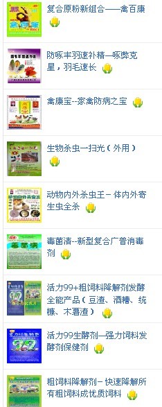 ![]() 欢迎您访问淘宝网畜牧产品销售量最大的网店——广西助农畜牧科技超市-兽药、饲料添加剂、保健剂、养殖器械、除四害产品、养殖科技图书和光盘等。 请登陆http://shop60558384.taobao.com/ |