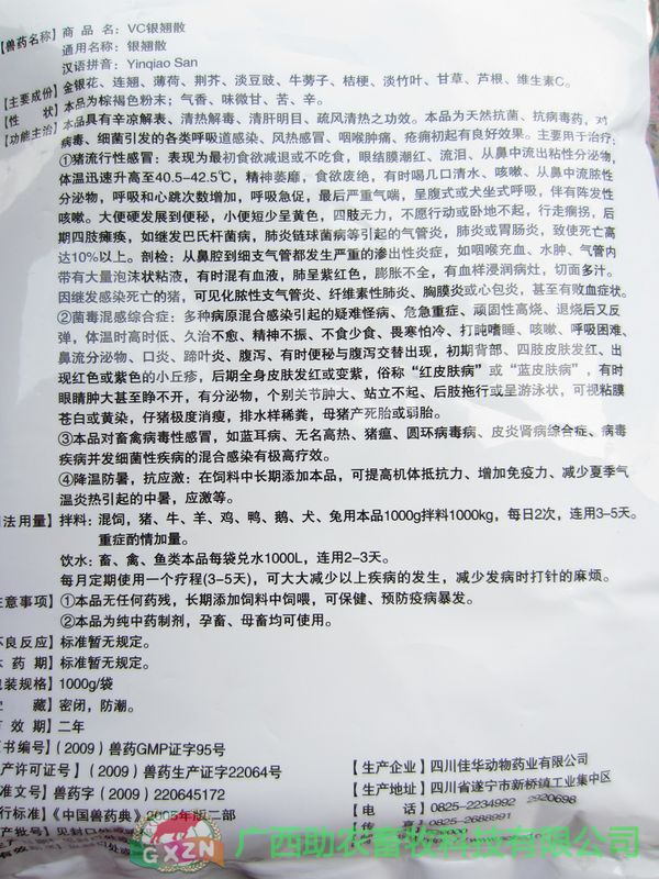 80%VC银翘散/四川佳华/高热猪牛羊鸡鸭鹅兔犬 Post By:2014/1/18 22:25:00