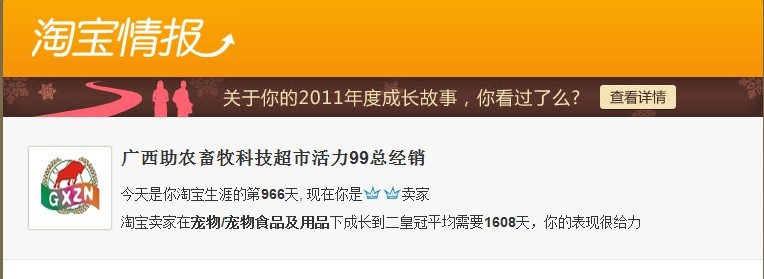 从2010年2月到2011年9月,历时19个月,我们从默默无闻的1心小店升到了皇冠;皇冠之路有些漫长,也经历了淘宝一年一度的大淡季和大改革,坚持不刷信誉,一步一个脚印走了过来。。。。从2011年9月到2012年10月,我们从一皇冠走到了双皇冠,从中小型卖家突破向大型卖家,走在淘宝畜牧行业的前沿!纵观淘宝畜牧行业,皇冠店没有几个,大多是钻级甚至心级小卖家,而这些小卖家则是以个人为主,没有实体店,货源则是到各大兽药市场批零采购,就这造成的价格偏高,货源不稳定,没有售后保证,甚至出现销售假冒伪劣产品。兽药线下实体店国家已经严格实施了兽药GSP(兽药GSP是兽药经营质量管理规范(Good Sale Practice for Veterinary Drugs)的简称,是兽药经营质量管理的基本准则,是为加强兽药经营质量管理、保证兽药质量而制定的一整套管理制度)。因为兽药是一种特殊的商品,对生产经营条件都有特殊的要求,只有对每个环节都采取严格的控制措施,才能保证兽药质量。兽药GSP就是在兽药流通过程中,针对兽药采购、储存、销售等环节制定的防止质量事故发生、保证兽药符合质量标准的一整套管理标准和规程,其核心是通过严格的管理制度来约束兽药经营企业的行为,对兽药经营全过程进行质量控制,防止质量事故发生,保证向用户提供合格的兽药。而兽药线上网络销售国家相关法规还处在空白区(相对人药网络上已经严格规定,淘宝上是找不到人药的,保健品不属于药品除外),这就导致了网络上销售的兽药未经严格规定出售,甚至一些不法商家出售不合格药品,违禁药、假药等。我公司是广西首家实体店通过兽药GSP企业,公司淘宝店严格按照实体店GSP标准,秉承专业、专注、专心深入的服务理念。立足淘宝畜牧业的前沿。成为淘宝畜牧业第一网店。