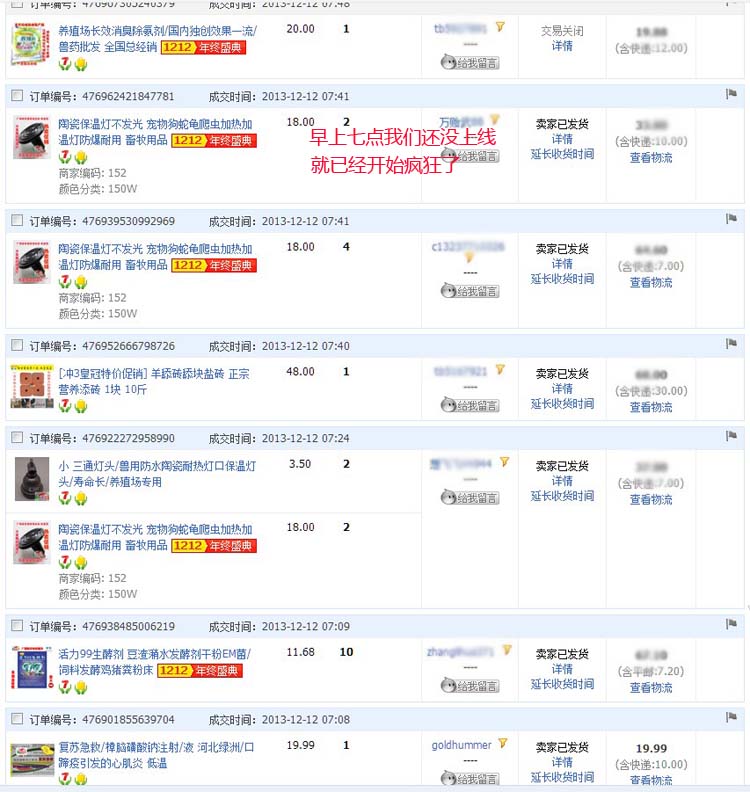 12月12日零点开始有人抢拍(为保护个人隐私旺旺名和成交金额不便公开)
