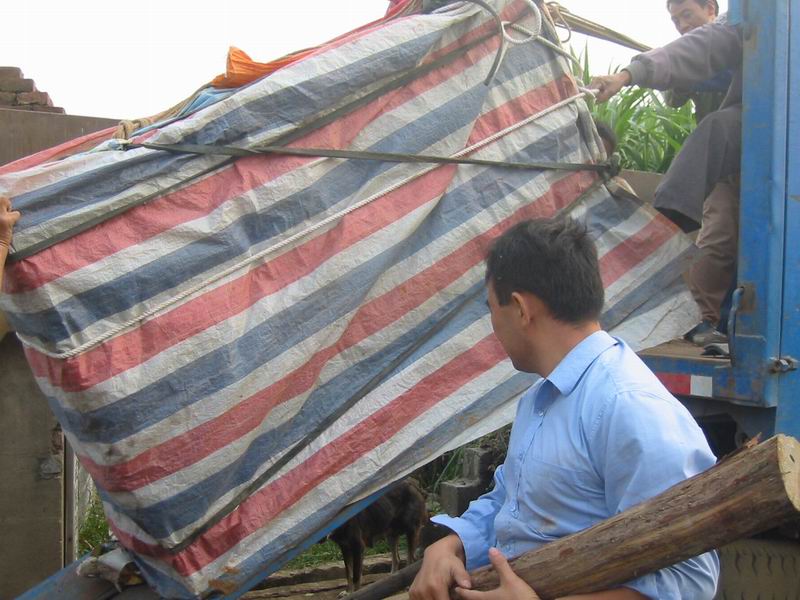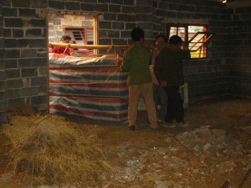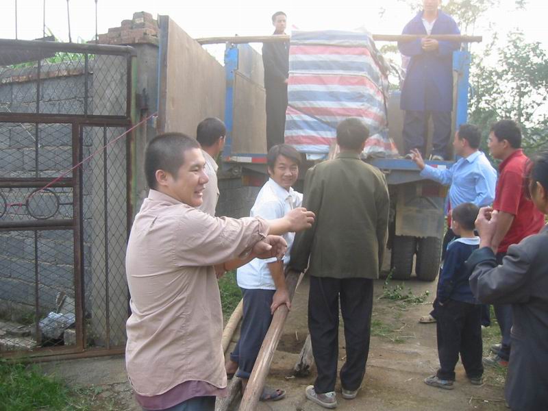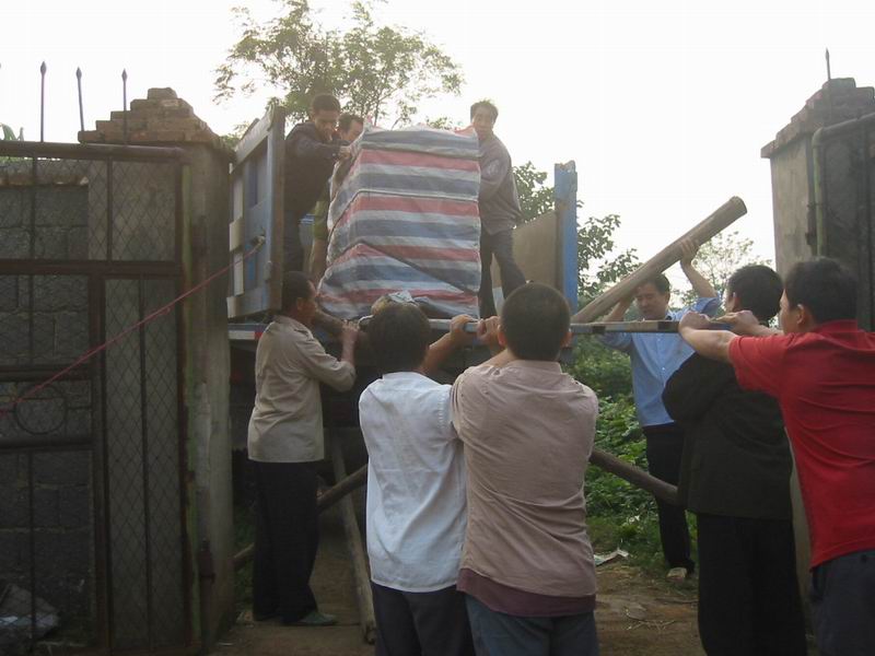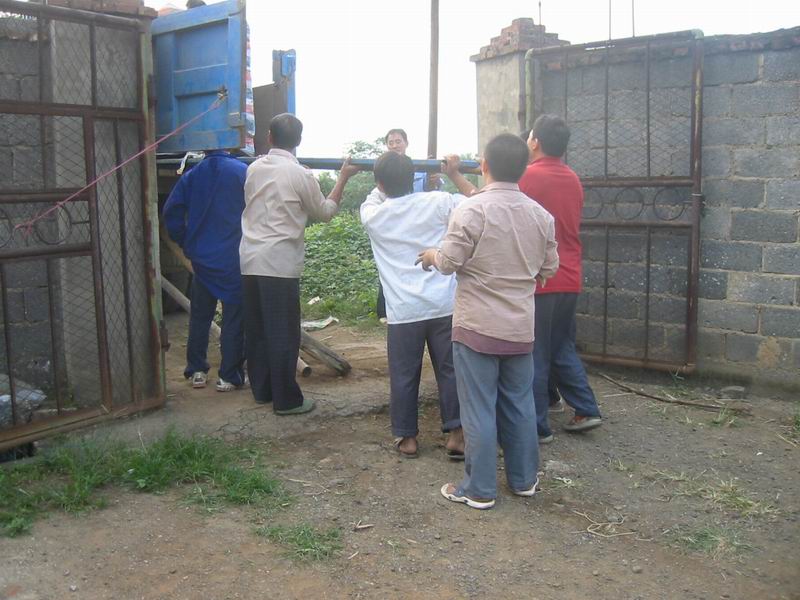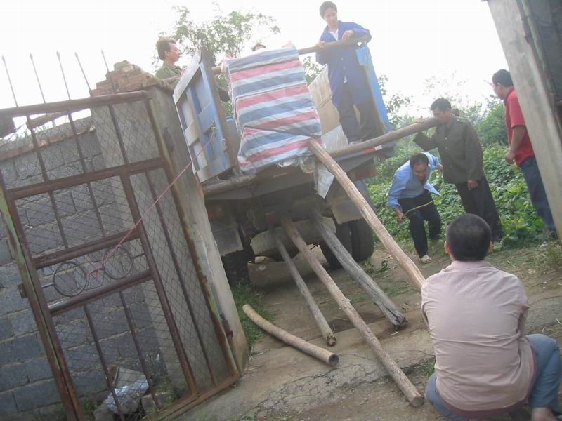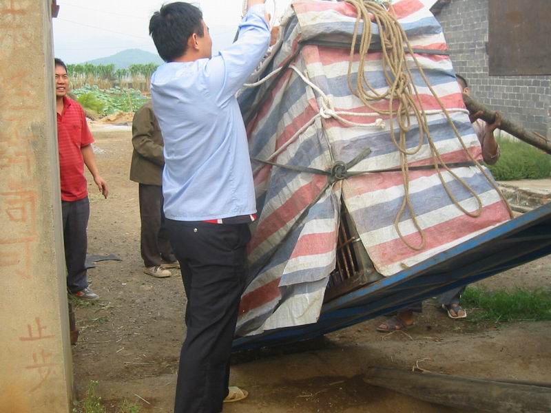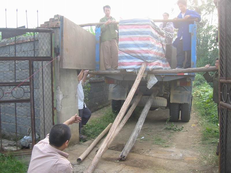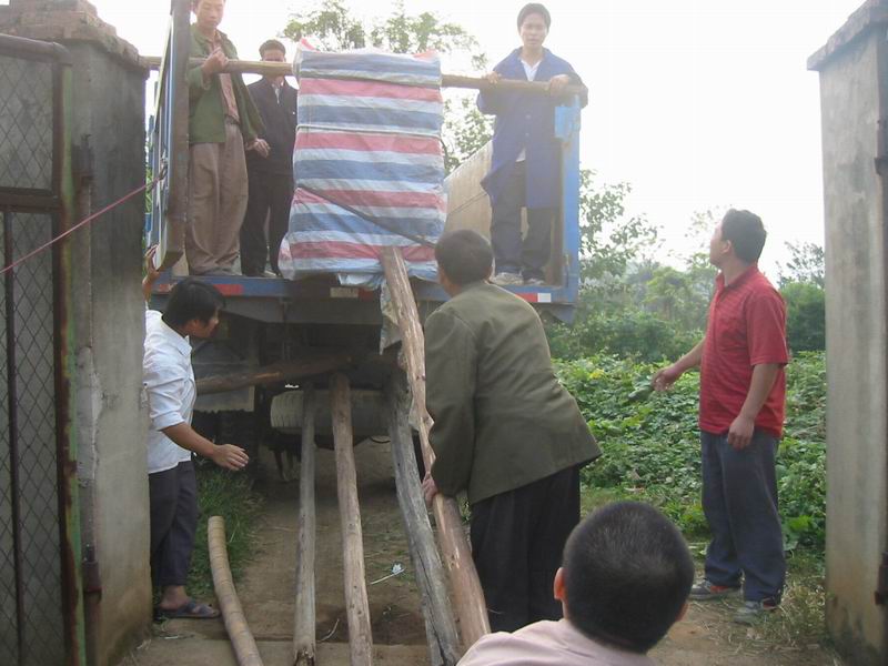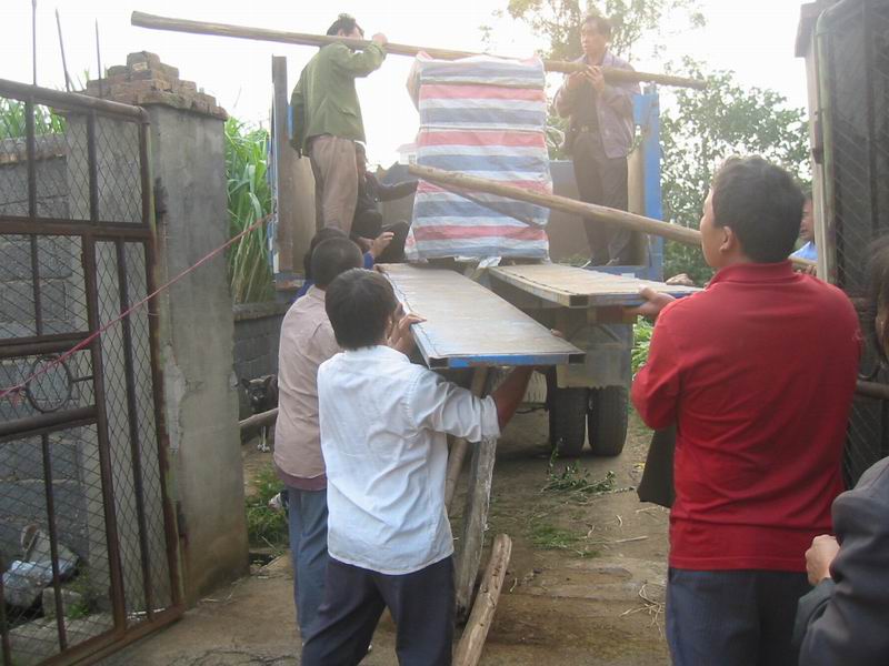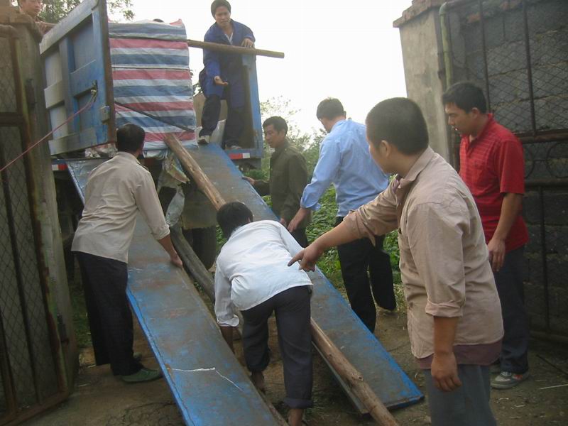 野公猪野性非常大,这了运输它,首先专门制作了一个超过150公斤的大铁笼,再用布完全遮光,这样一个重达300公斤的家伙,完全人工的情况下需要抬到养殖笼舍中,实在费了很大的功夫。
