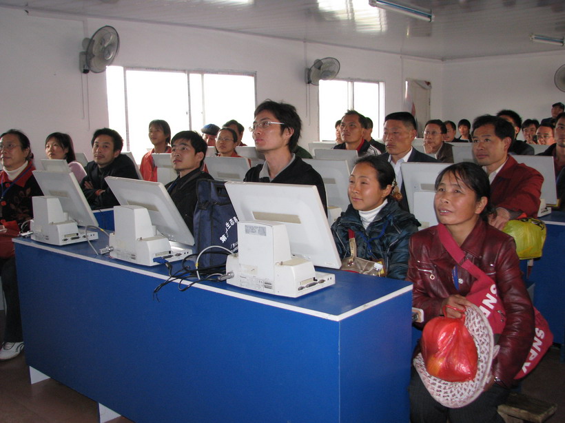 4.在新实验场参观中,每个学员都异常地兴奋,因为蝇蛆养殖、蚯蚓养殖都全部是新技术,野猪养殖是很多学员第一次看到的,一个大型的多媒体教室更是令学员无比的兴奋,在这个安装了75台电脑的多媒体教室对学员进行电脑培训全部是免费的。