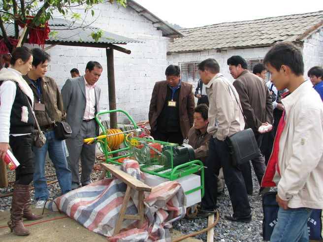 这是用来清洗、消毒栏舍的清洗机,学员们对这个机器的用途也兴致不小