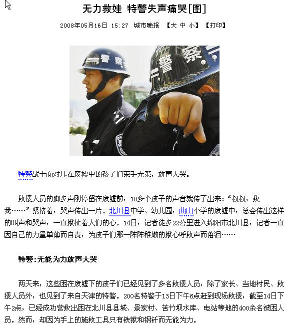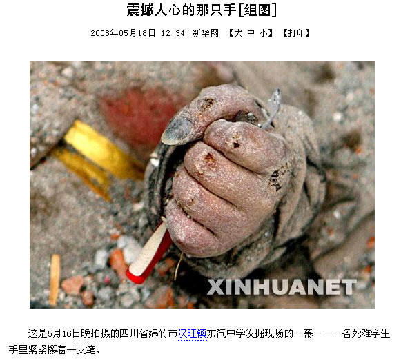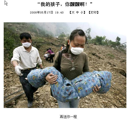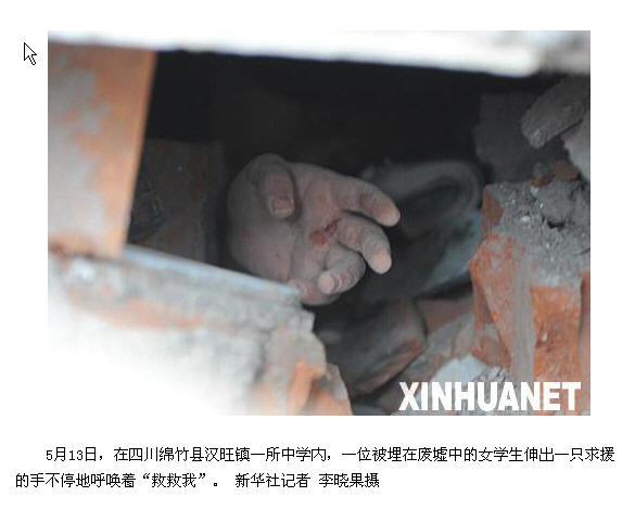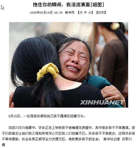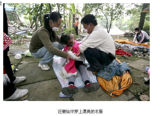 真是很感动,也很震撼,因为第一次感受到,死亡的威胁离我是如此之近,无论做什么,我都觉得无法抚慰那些朋友们心中的伤痛,希望这些朋友们坚强起来,振作起来,希望有更多的朋友来帮助他们,希望孩子们早日走出阴影!我平日捐助的孩子们,他们的校舍也倒塌了,不过很幸运,他们都很完好!除了我们现在要帮助那些挣扎在生死边缘的朋友们,我们自己,也要好好珍惜生活,珍惜生命,珍惜自己身边的每一个人!