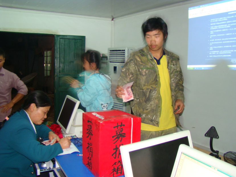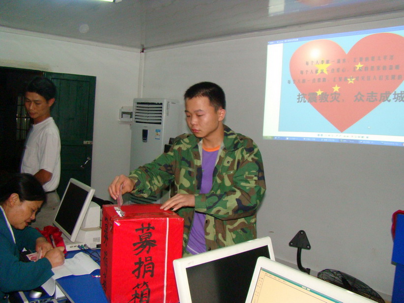 大家都知道虽然近段时间资金周转相对紧张,服务部也要向灾区捐献2万元,捐献的金额多少自己决定,我在这里向你们的奉献而感谢!