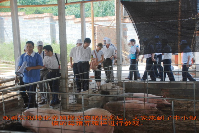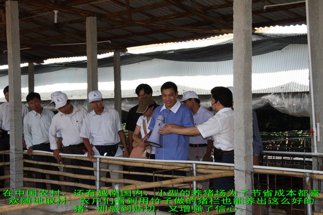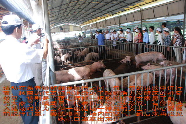 2009年7月24日,越南全国所有州市畜牧高级官员及畜牧业代表共85人到三塘基地参观学习,为什么一个国家的所有州市畜牧官员都派出代表参加了呢?原因是2009年6月12日,以越南畜牧局最高官员黄博士为首领的四人前来中国广西南宁详细参观了三塘活力发酵床示范基地,详细报道请看这里http://www.syc163.com/bbs/dispbbs.asp?boardid=12&id=41828&page=1&star=1,此次参观让越南畜牧最高官员非常兴奋,解决环境污染的活力发酵床技术与木薯渣综合利用技术正是他们迫切需要寻求的新技术!回到越南后,召开了全国畜牧官员会议,引起了全国官员的极大兴趣,再次组织全国畜牧官员前来中国广西南宁参观学习,回去后即安排全国推广。