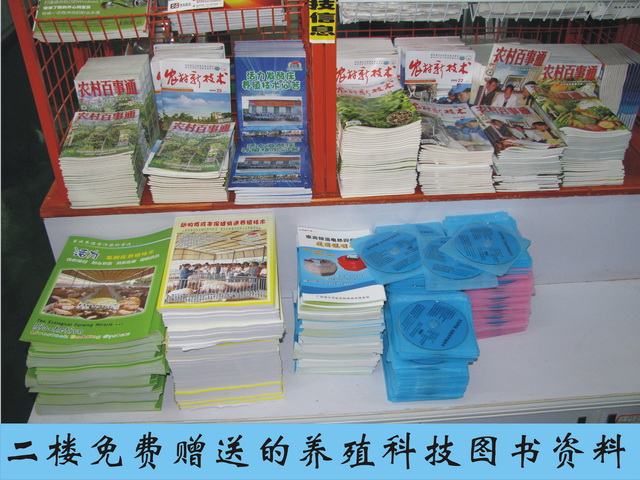 我们有六百多种各种养殖方面的科技光碟和图书,以及国内最新最权威的养殖科技杂志,这些图书和光碟内容有各种动物的科学养殖,疾病治疗于防预,饲料的配方等。同时还有我们免费赠送的一些内部资料。