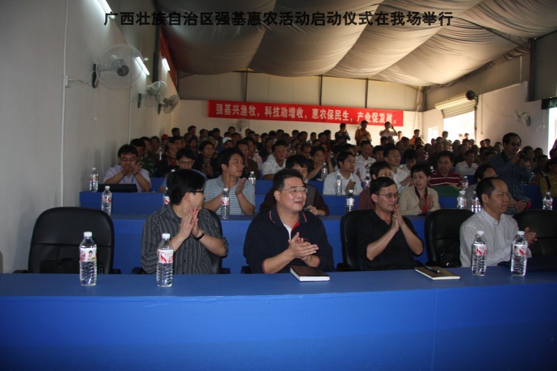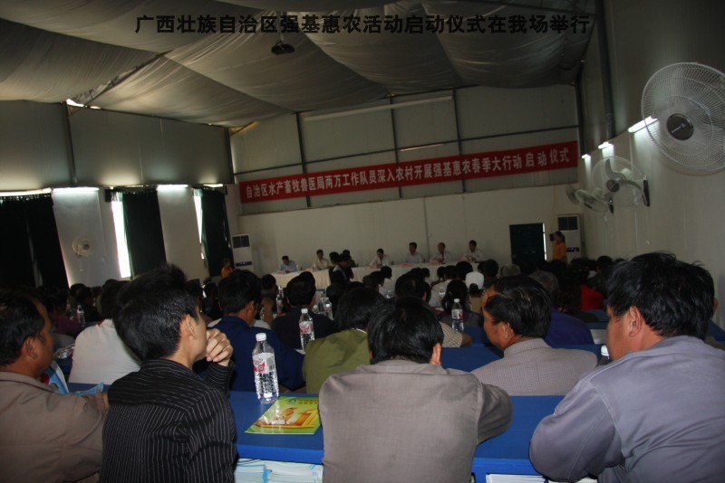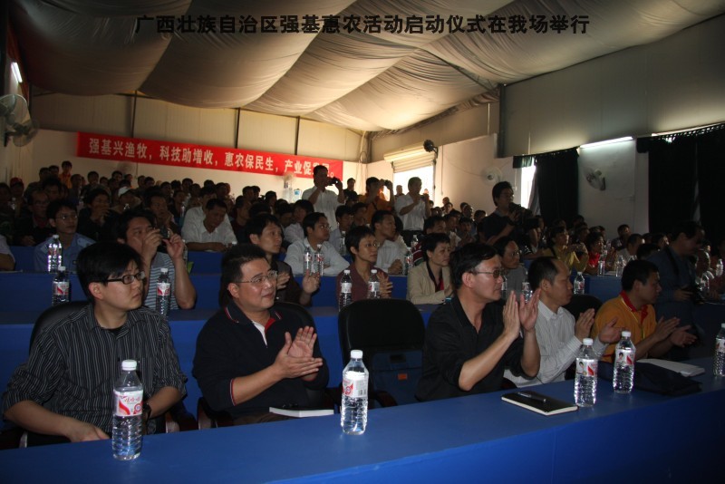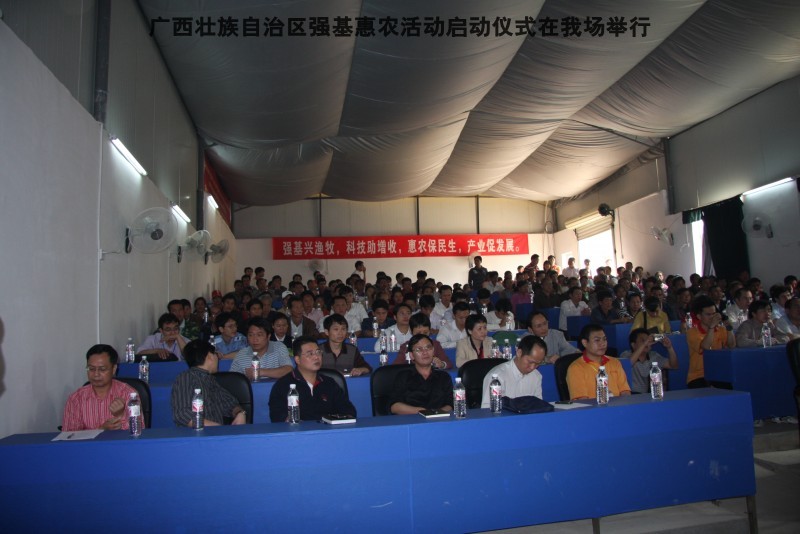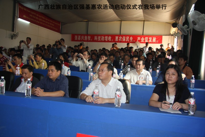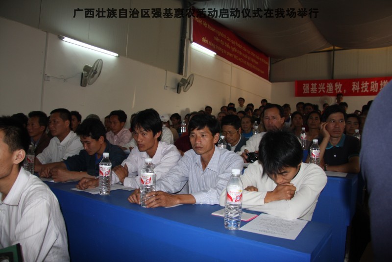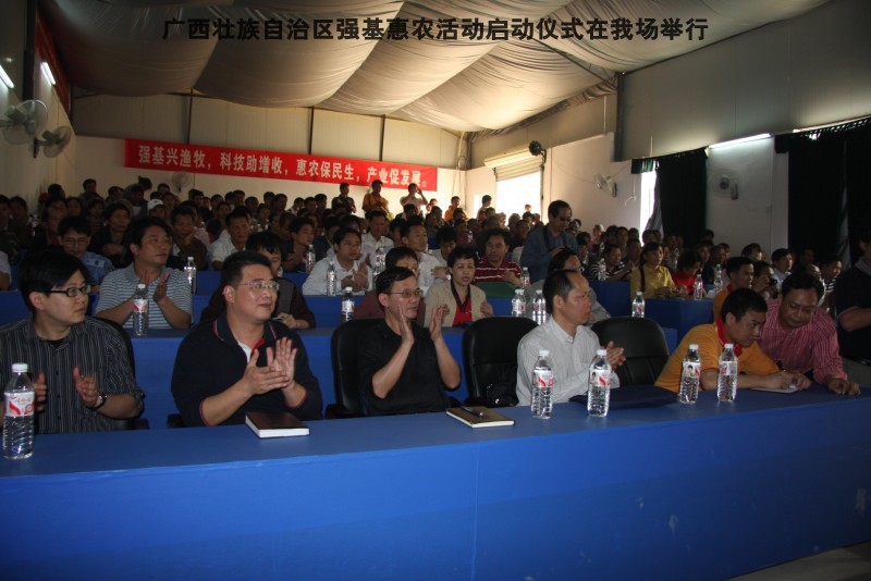 参加本次活动到来的领导有区水产畜牧局梁雨祥,南宁市李国忠副市长,南宁兴宁区高虹区长,南宁市水产畜牧局梁兆强局长。自治区动物防疫监督所代表及养殖户200多人,我们的阶梯教室全部坐满。