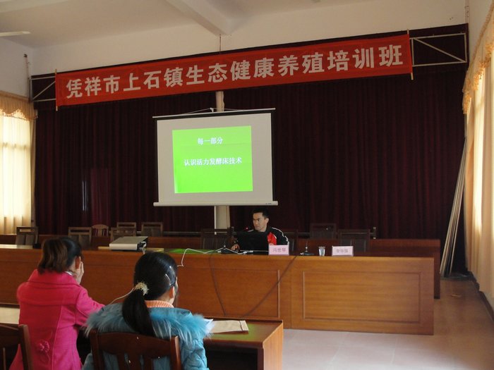 经过多次到三塘的活力发酵床养殖示范场实地参观考察后,凭祥市畜牧兽医局在全国众多发酵床技术中,选择了活力发酵床养殖技术,今天在凭祥市的上石镇政府内举办了“凭祥市上石镇生态健康养殖培训班”,我们接受了单独邀请去讲授“活力发酵床养殖技术”。