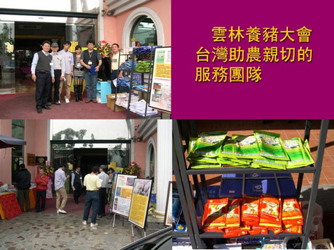 3月18上午台湾助农代理商邓谚璟先生与工作人员一起参加了台湾最南端的第一养猪大县(160万头猪)——屏东县的养猪协会,在会议现场播放视频介绍我们的发酵床养殖新技术,养殖户看到这些新技术后都很感兴趣,带去的1000余份活力99资料都不够发,此次会议打响了进军台湾养殖业市场的第一枪。紧接着又参加了几场大型的养殖会议,分别是3月21日的桃园县养猪协会大会、3月22日的嘉义县养猪大会、3月29日的苗栗县养猪大会和3月30日的云林县养猪大会。