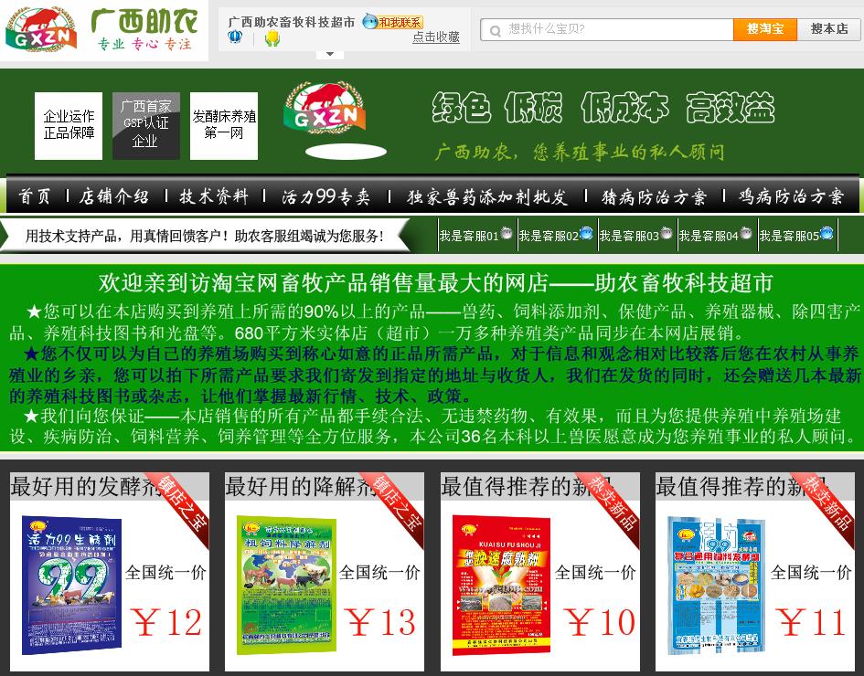 国内首家正式通过兽药GSP企业,国内最大的兽药、饲料添加剂、养殖器械批发零售企业之一,可能是在淘宝上畜牧业中最大的实体公司与销售量最大的网店
