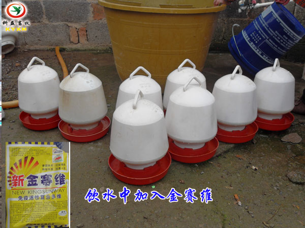 前两天就已把养鸭的雏栏舍做好,四周围起薄膜,漏粪板上垫好稻草,顶部也用薄膜盖上,挂上几盏保温灯,等待鸭苗回来。今天是养鸭第一天,饲养员一早就打开保温灯加温,上午10点左右鸭苗终于拉回来了,是昨天刚出壳的小鸭,已注射过鸭病毒性肝炎疫苗的了,总共是480只。同事们把鸭苗搬下车直接搬入雏栏舍,从装鸭苗竹框里拿出鸭苗,鸭子初次住进新建的栏舍里朝外面乱跑、乱钻,在大约十几分钟内鸭子适应了环境,在育雏室内到处玩耍。在给鸭苗初次饮水里要加入金赛维,用于抗应激、提高低抗力及补充维生素。明天计划用强效肉鸭防病药包进行保健。
