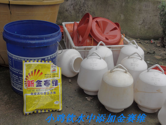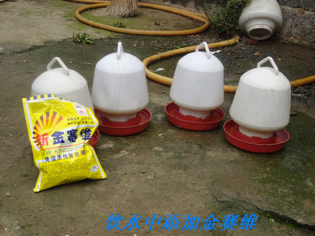 今天是进马鸡苗回来的第三天,小鸡在育雏栏舍内情况良好,目前还没有出现死亡。这主要还是管理工作做的好。为提高雏鸡的免疫力,每天的饮水中添加金赛维。