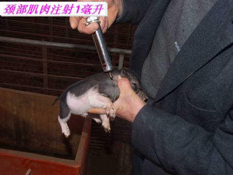 今天有头环江母猪刚好产仔3天了,正好打补铁药,下午和我的同事把注射器消毒好后给小香猪进行了补铁。我们给每头小香猪分别注射了1毫升的补血止痢,补铁后两周内若仍有贫血现象,应在补充一次。以免引起不同程度的贫血症状。这窝仔猪我会一直跟进到保育为止。