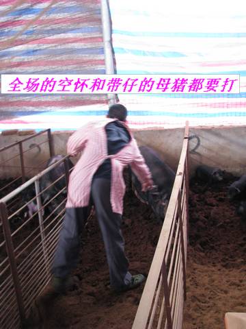 今天的工作主要是给空怀和带仔的母猪及仔猪免疫口蹄疫疫苗。早上喂完猪,打扫栏舍卫生完毕。就和同事把注射器消毒好,热煮沸消毒15分钟之后,就开始去给猪注射疫苗了。除了怀孕母猪,几头比较瘦弱的和出生20天以下的不接种外,其它的都注射了。注射完所有疫苗包装,用过的酒精棉球、碘酊棉,都集中销毁了。因为散乱在畜舍中会成为病原的来源。接种后在几个小时内我和同事轮流去巡看猪栏,看有没有可能出现疫苗反应。还要没事。这两天我们不喂给抗生素,在饲料中,复合维生素用量会提高5%连用1周。
