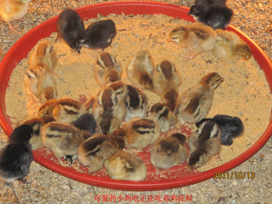 2:现在已经开始喂小鸡料了,鸡花料已经停止使用,现在每天的饲喂量在40斤左右。11天日龄的小鸡健康的成长着。