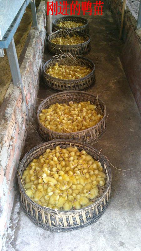 助农农场2012年第十批桂柳鸭养殖日记,早上上班喂完其它鸭子做好卫生工作,在准备一下育雏栏做好进鸭前的准备工作,将近中午鸭苗拉回来到把鸭子卸下车搬到育雏栏,把小鸭从竹筐里抓出来安顿好,到镇上拉两包小鸭料回来开始给小鸭喂料,用金赛维+雏力健兑水喂小鸭,现在气温高不用给小鸭人工保温直接采用自然温度就可以,晚上防止起风把卷帘放下,开启照明灯给小鸭照明采食即可,下面给大家展示鸭子图片,今天的养殖日记就写到这里。