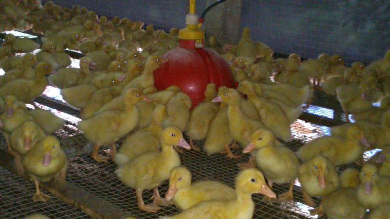 助农农场2012年第十批桂柳鸭养殖日记,小鸭回来今天是第三天,晚上没有采取什么保温措施只让小鸭在室温度夜,把卷帘放下挡风开照明灯即可,早上发现有4只死鸭都是被卡铁网死的,整张网唯独有两个地方网眼不较大少一根线导致,正好给小鸭保温的区域就是在那个地方没注意看正式失误死了几只可惜了,用料盘加料喂小鸭好浪费饲料小鸭一有点惊动都往一处地方跑,踩到料盘上的饲料时速度快把饲料弄飞出来掉到底下发酵床上了,赶紧换用料筒加料喂小鸭底下加一个料盘这样就没有饲料掉落了,今天的养殖日记就写到这里。