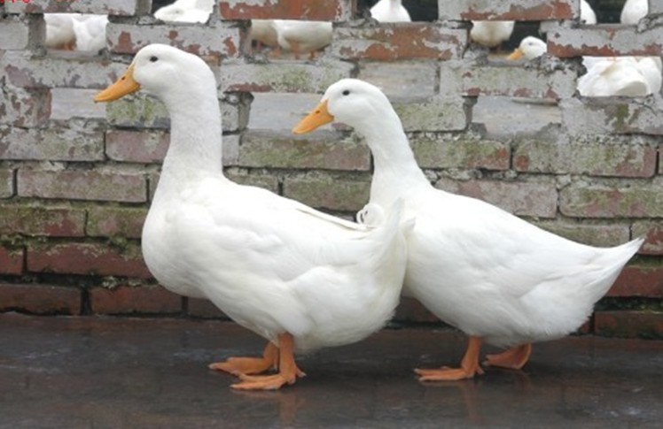 樱桃谷肉鸭是英国樱桃谷公司培育成功的一个瘦肉鸭品种。樱桃谷肉鸭具有生长速度快、耗料少、瘦肉率高、抗病力强等优良特点。从照片可看出,樱桃谷肉鸭具有极良好的肉用体型。