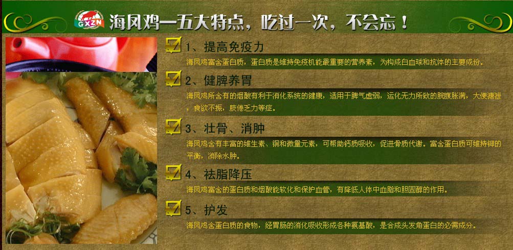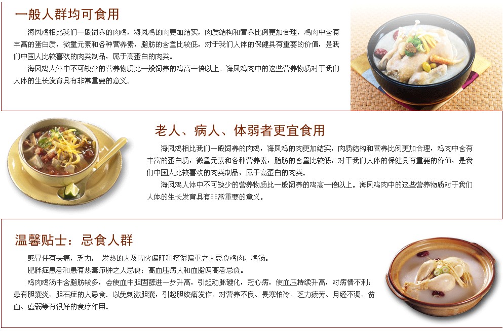 我公司更有美味的海凤鸡销售详情点击http://www.syc163.com/haifeng/index.html了解,海凤鸡肉质鲜美,滋补保健,肉鸡中的“战斗机”,绿色天然,是过年送礼的首选佳品!