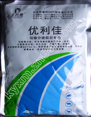 1、做好母猪产前产后保健工作:母猪产前产后2周,在饲料中添加优利佳母猪产前15天及产后15天内连续使用本品,可有效预防母猪产前不食、妊娠毒血症及产后“MMA”综合症。同时促进母猪正常发情、排卵、减少返情率,提高产仔量。产前产后一周在饲料中添加神奇母仔宝,不仅对母猪的产后综合症有明显的预防和治疗效果,最大特点是针对仔猪不好灌服药物的情况可以直接将药物喂给母猪,通过母体吸吮乳汁达到防治仔猪痢疾效果,且同时能够对仔猪补充所需的各种微量元素,对仔猪贫血、体弱、提高免疫力均有很好的作用。