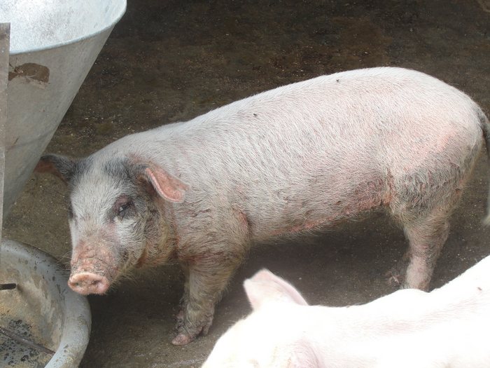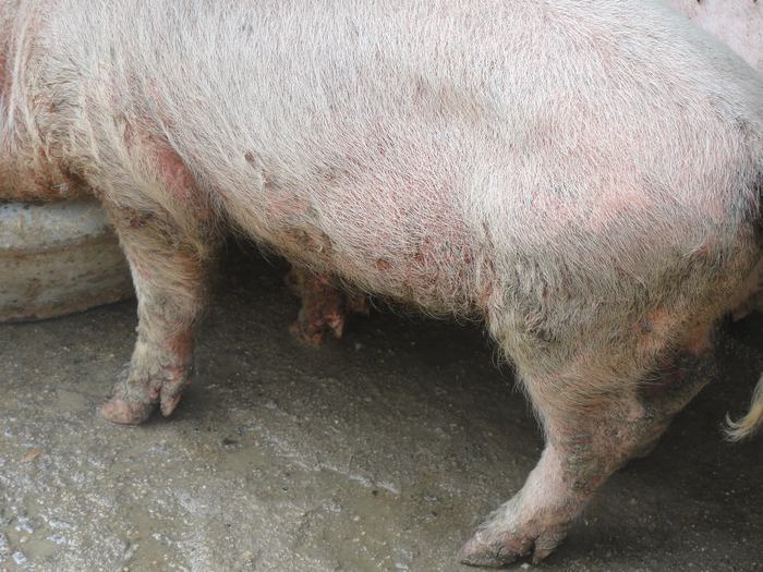 一头50斤左右的小猪,吃食正常,得了严重的皮肤病,已经有一个月了,但就不知道是什么病?怎么治疗?请各位版主及朋友指教,谢谢!