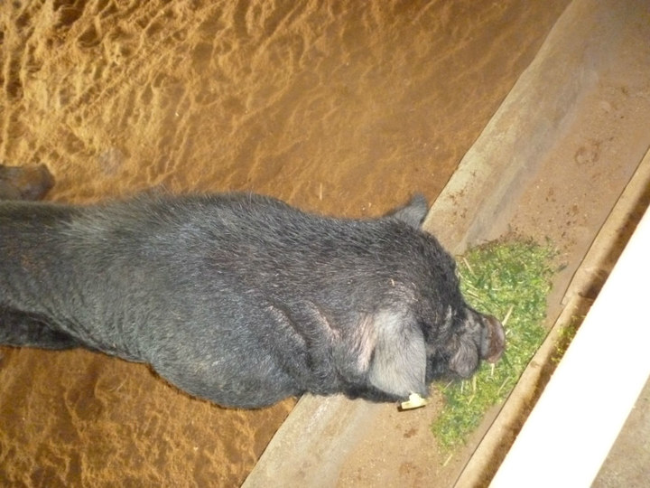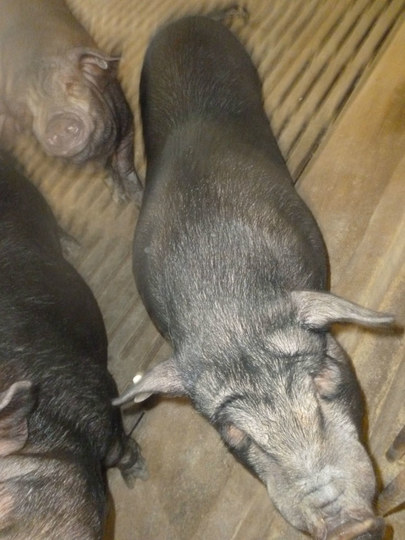 本场有有巴马香猪、环江香猪商品猪出售和猪种出售。本场的猪主要喂食豆粕、麦麸、玉米粉,每餐还添加一点绿色食物(