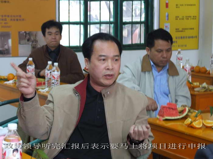 05年4月份科协领导带队到夏黄村讲解发酵木薯渣技术。