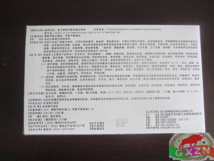 兽药名称:通用名称:复方磺胺甲氧哒嗪注射液 汉语拼音fufanghuanganjianjiayangmidingna Zhusheye