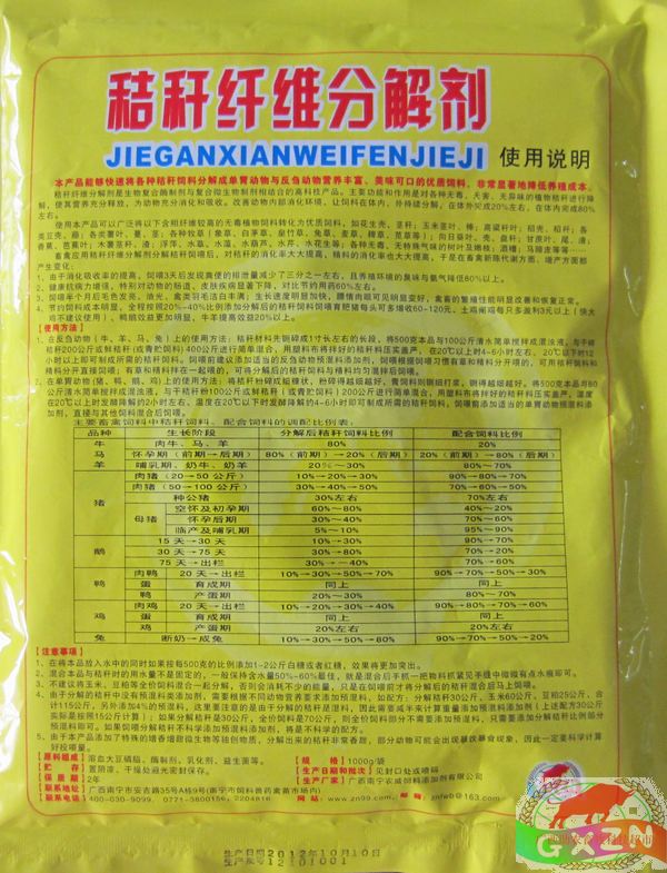 全新的分解秸杆粗纤维的产品上市,效果远超粗饲料降解剂!秸秆纤维分解剂与粗饲料降解剂的区别:一是包装大了,粗饲料降解剂是prefix = st1 ns = "urn:schemas-microsoft-com:office:smarttags" 125克,秸秆纤维分解剂是1000克;二是秸秆纤维分解剂发酵出来的饲料适口性有了一个大的进步,发酵分解出来的物料更香甜可口!分解青贮两不误!针对中大养殖场、大包物美价廉,上市不到一个月就已经赢得了广泛的赞誉。 秸秆纤维分解剂 独创秸秆纤维分解产品,效果无以伦比欢迎比较 将秸秆变成动物疯狂抢吃的饲料,降低饲料成本效果直观