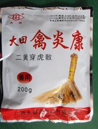 禽炎康 【性 状】本品为黄褐色或灰黄色的粉末,气芳香,味苦。 【功能主治】清热解毒。抗菌消炎,止痛,抗病毒。主治感冒发热,呼吸道感染,支喉气管炎;瘟热症,鸡瘟,鸭瘟,鹅瘟等;大肠杆菌病,禽霍乱,鸡葡萄球菌病,细菌性下痢,肠炎;鸭浆膜炎,大头瘟,小鹅瘟,花肝病。鸽瘟,鸽痢。 【用法用量】治疗:用本品一包200克拌料200公斤,重症加倍,连用5天。 预防:用本品一包200克拌料300公斤,连用3天。 【不良反应】标准暂无规定。 【注意事项】标准暂无规定。 【规 格】200g/包 【包 装】复合膜袋,每袋1包 【生产企业】广西大银田兽药有限公司? |