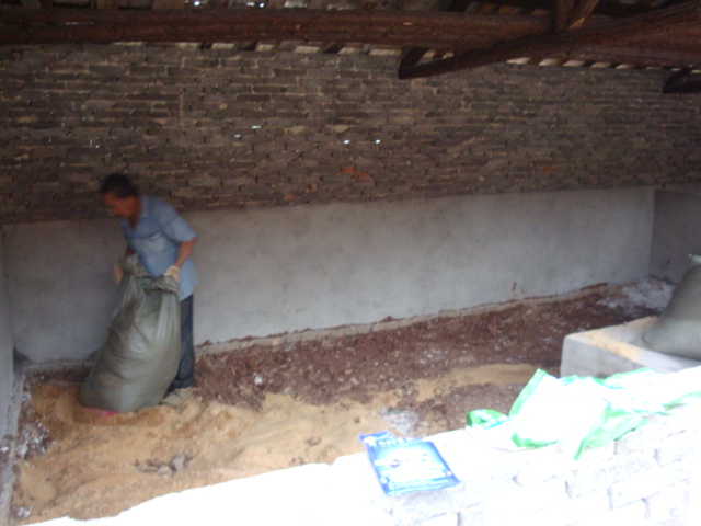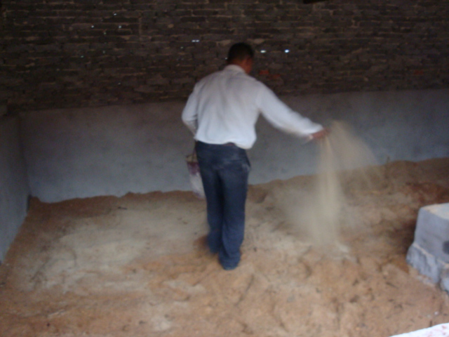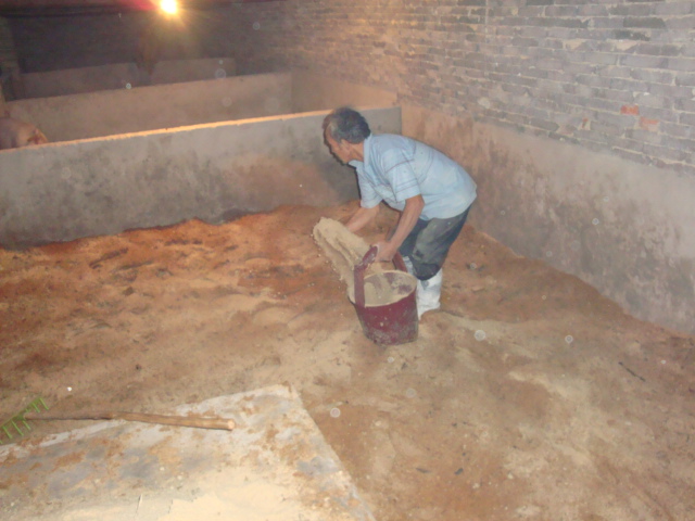 铺锯末15厘米厚,铺匀