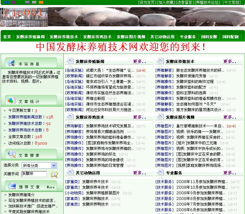 中国发酵床养殖技术网,可能是国内最全的发酵床资讯和技术介绍,你也许还对发酵床养殖技术概念模糊,对发酵床养殖还半信半疑,但是你只要来到我们的网站,看了这些资讯保证你不再怀疑发酵床!每天的点击量上万,你不妨进来了解了解。