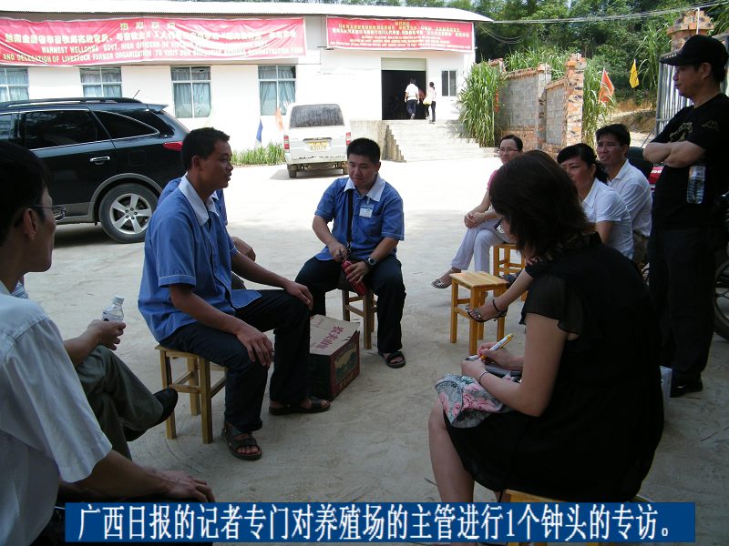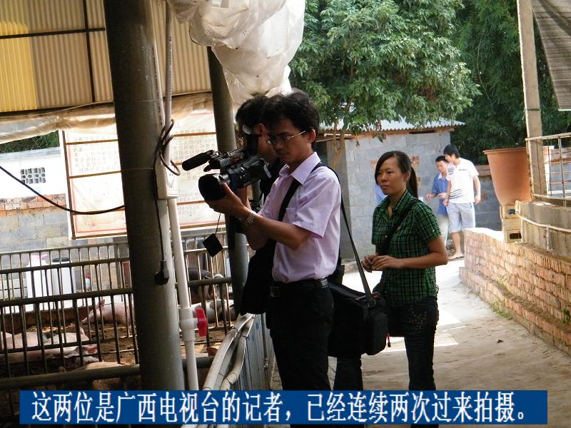 也正是在这样的高温天气下,南宁三塘的活力发酵床养殖场迎来了每周六的免费参观日,迎来了众多养殖户和来自远方客人的参观和检验,今天来参观的除的养殖户外,还有有南宁新宁区的领导、广西监狱劳教系统三位领导干部、广东省养猪行业协会三位经理和主编以及广东省种猪场负责人、广西电视台和广西日报两家媒体的记者,大家欢聚一堂,都是为了能领略下活力发酵床的风采,以及把这些风采报道介绍给更多的人。