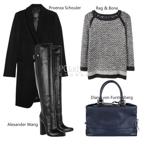 如果你的腿不似Miranda kerr般纤细,过膝靴同样可完美驾驭,金卡戴珊为我们提供了很好的范本,过膝款极好的掩盖了腿部壮硕的问题,配搭长及膝盖的外套,大腿的问题也迎刃而解。这位刚刚创立自有品牌的新晋设计师大胆的选择用裙摆皮革外套配搭,摩登犀利,十分抢镜。