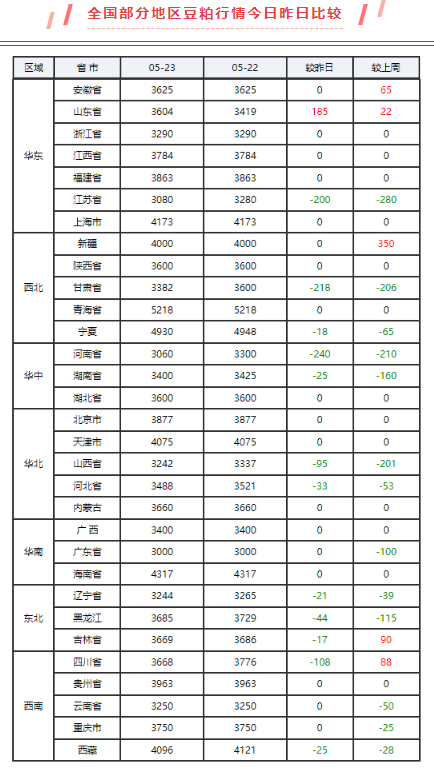 全国部分地区玉米、豆粕行情资讯及价格对比(2025年5月23日)